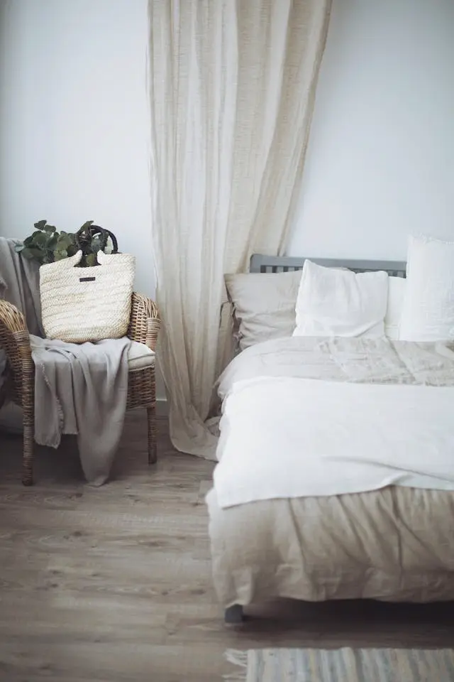 Para las ventanas, la elección debe recaer en estores o cortinas de materiales naturales como el lino o el algodón en tonos neutros. Estos permiten el paso de una luz tamizada que mantiene la privacidad sin bloquear la energía del sol, fundamental para que el dormitorio se sienta aireado.